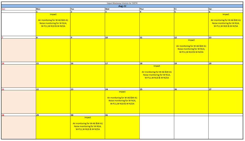 2.3 Site audits were carried out on a weekly basis to monitor and audit the timely implementation of air quality mitigation measures within the site boundaries of this Project. The summary of site audits are shown in Table 6.1 of this report.