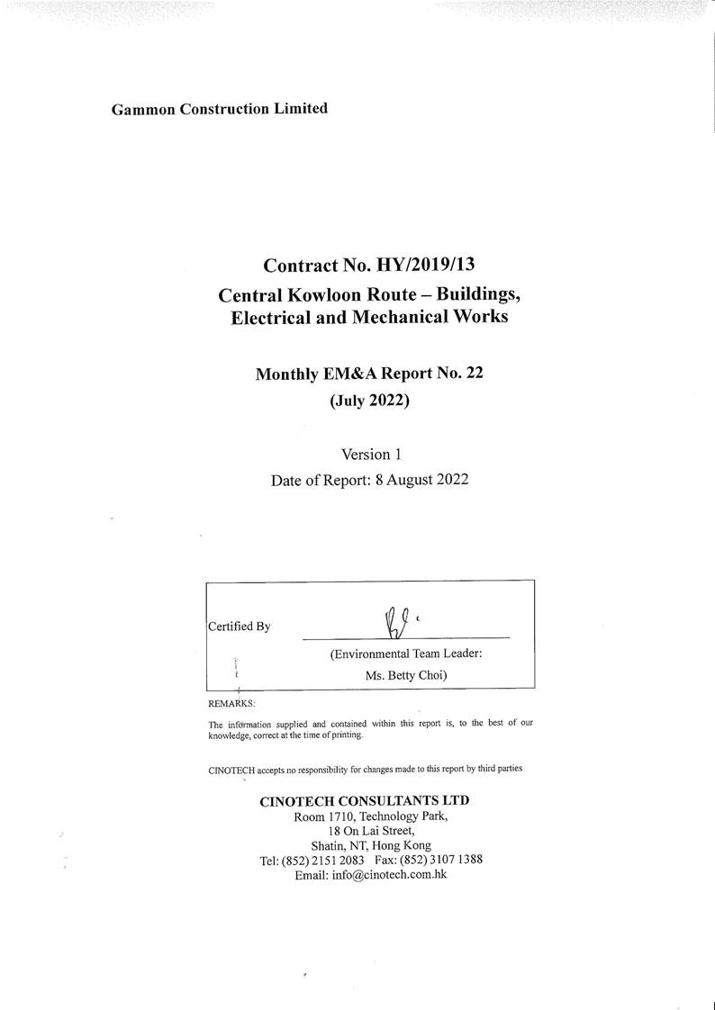 A.1 Build King – SK ecoplant Joint Venture (“Contractor”) commenced the construction works of Highway Department (HyD) Central Kowloon Route Contract No. HY/2014/20 – Section of Yau Ma Tei West (“The Project”) on 12 February 2019. This is the 42nd monthly Environmental Monitoring and Audit (EM&A) report presenting the EM&A works carried out during the period from 1 July 2022 to 31 July 2022.