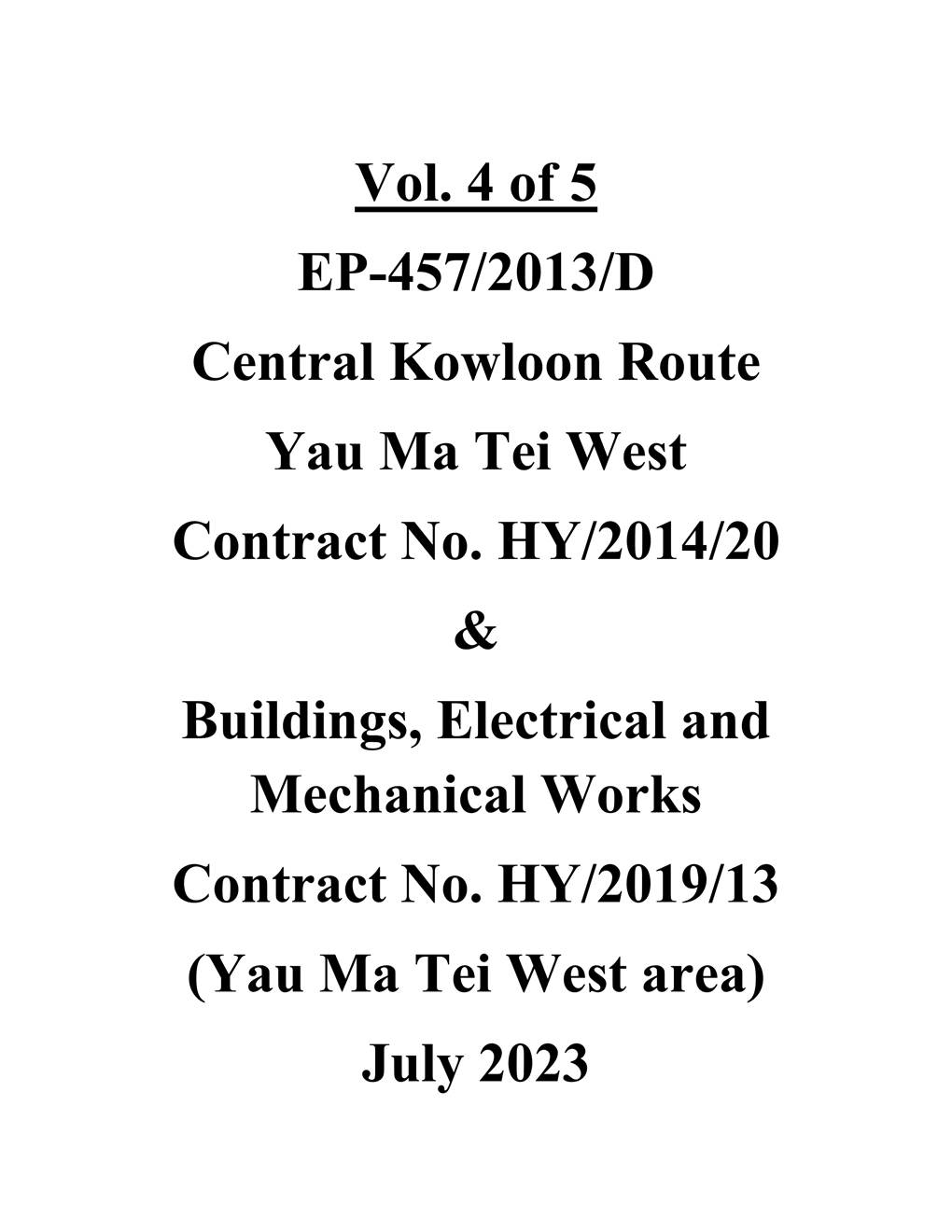A.1          Build King – SK ecoplant Joint Venture (“Contractor”) commenced the construction works of Highway Department (HyD) Central Kowloon Route Contract No. HY/2014/20 – Section of Yau Ma Tei West (“The Project”) on 12 February 2019. This is the 54th monthly Environmental Monitoring and Audit (EM&A) report presenting the EM&A works carried out during the period from 1 July 2023 to 31 July 2023.
