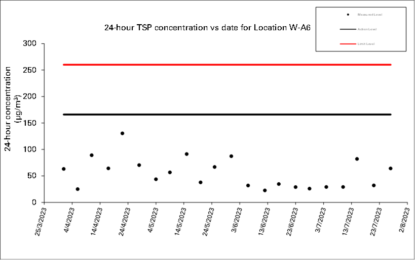No Action/Limit Level exceedance was recorded for all 1-hour and 24-hour TSP monitoring in the reporting month.