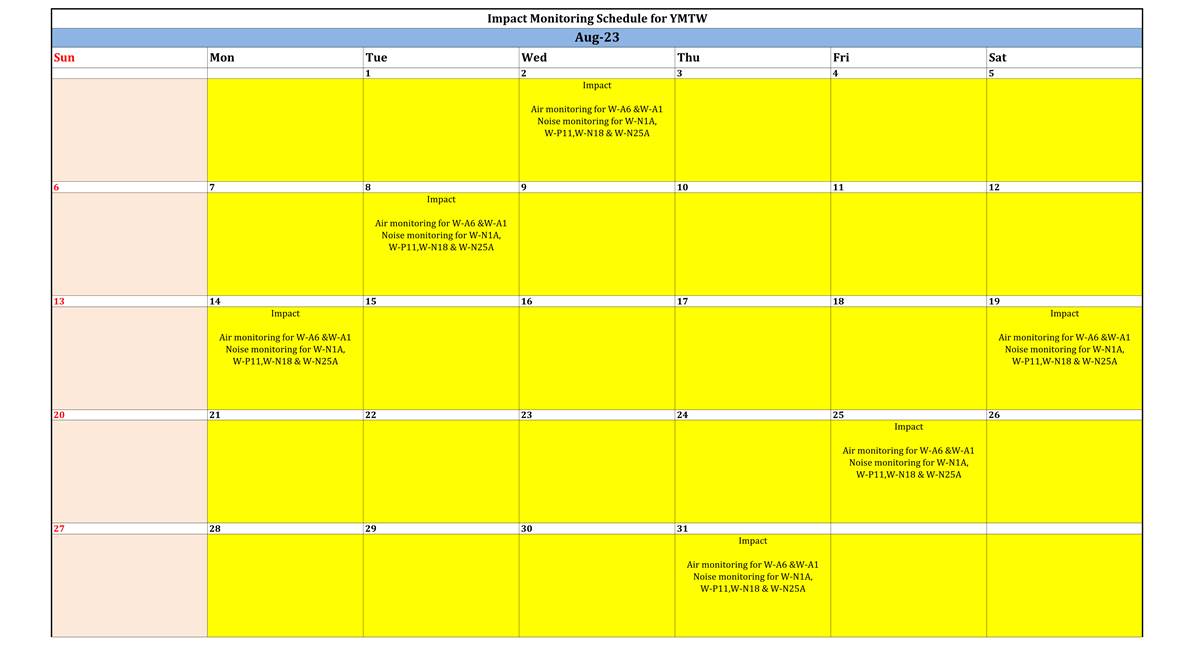 No Action/Limit Level exceedance was recorded for all noise monitoring in the reporting month.