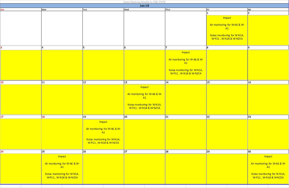 A.6 Bi-weekly inspection of the implementation of landscape and visual mitigation measures was conducted on 7 and 21 June 2018. Details of the audit findings and implementation status are presented in Section 5.