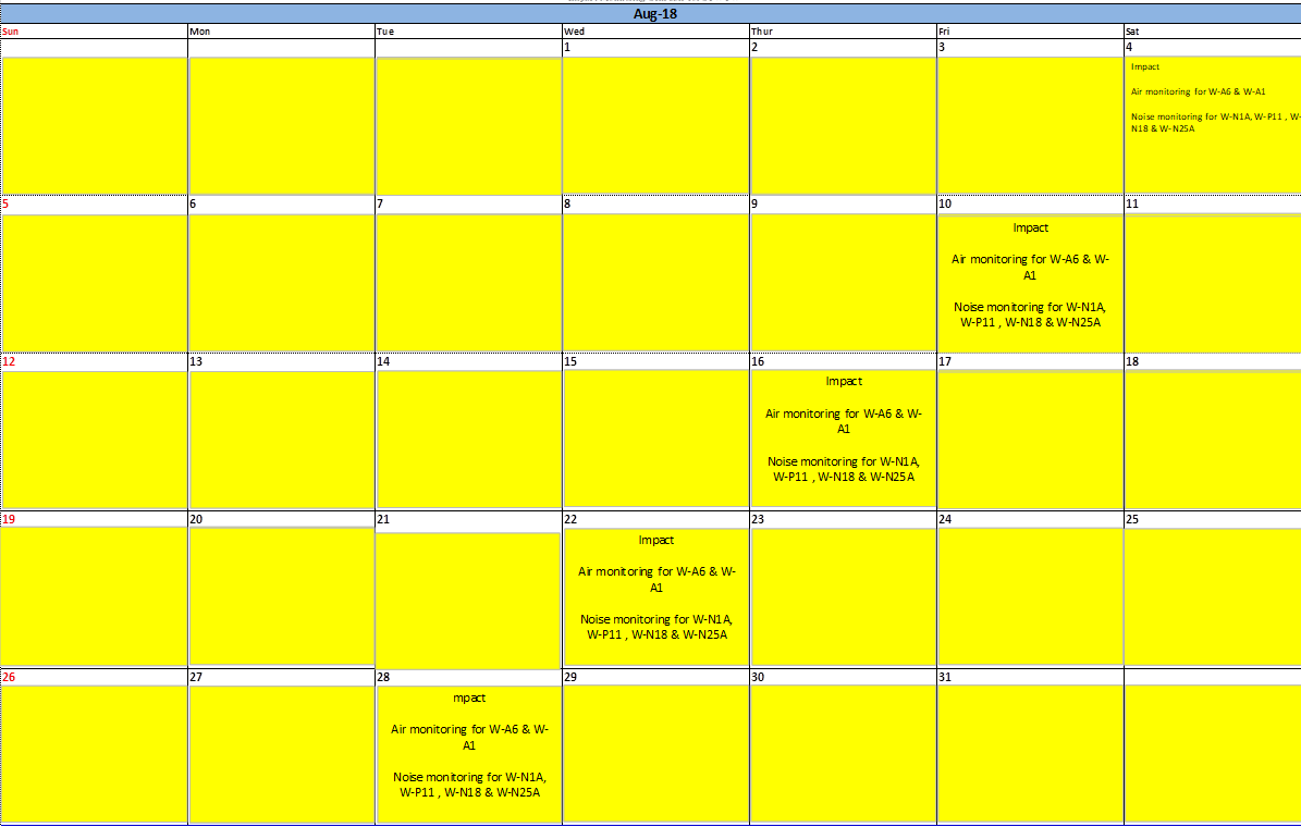 A.4 No construction work was conducted during time period other than normal working hours during this reporting month.