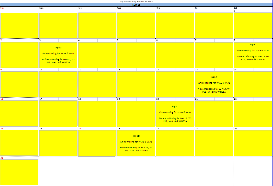 A.10 No exceedance of the Action and Limit Levels of 24-hour TSP and 1-hour TSP monitoring were recorded during the reporting period.