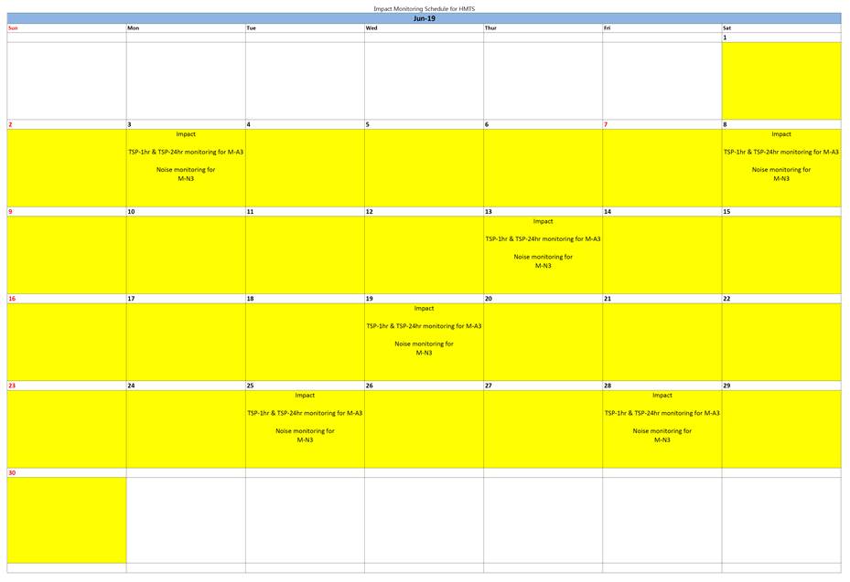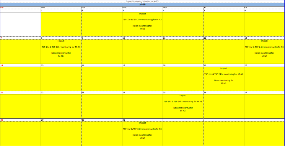 A.7 Joint weekly site inspections were conducted by representatives of the Contractor, Engineer and Contractor’s ET on 4, 11, 18, 25 June 2019. The representative of IEC joined the site inspection on 18 June 2019. Details of the audit findings and implementation status are presented in Section 5.