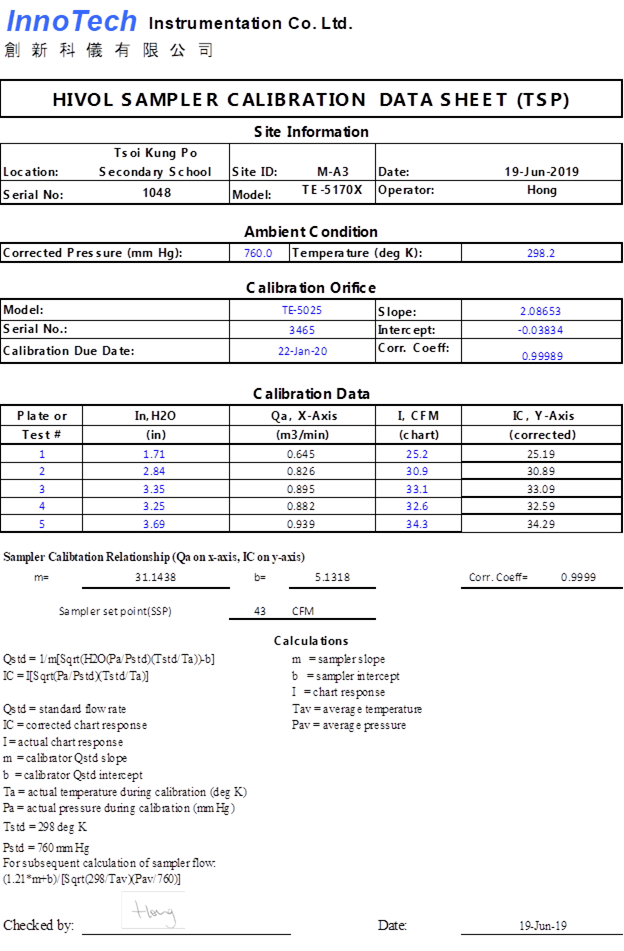 H. Calibration Certificate (Air Monitoring)