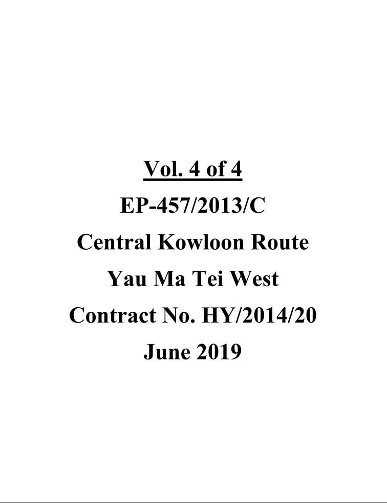 1.2. The Central Kowloon Route – Design and Construction Environmental Impact Assessment Report (Register No.: AEIAR-171/2013) was approved with conditions by the Environmental Protection Department (EPD) on 11 July 2013. An Environmental Permit (EP 457/2013) was issued on 9 August 2013. Variations of EP (VEP) was subsequently applied for and the latest EP (EP-457/2013/C) was issued by EPD on 16 January 2017.