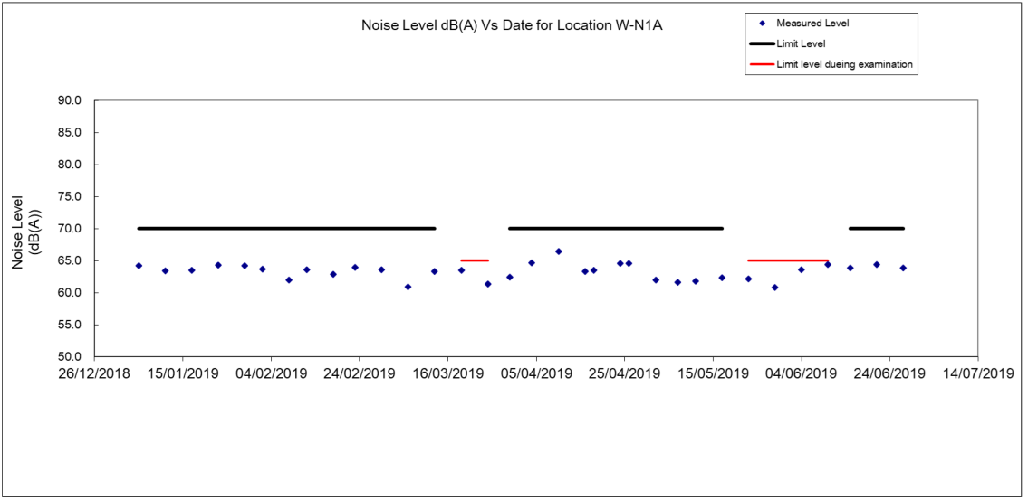 Remark: Examination was held from 29 May 2019 to 4 June 2019. Limit level was reduced to 65 dB(A).