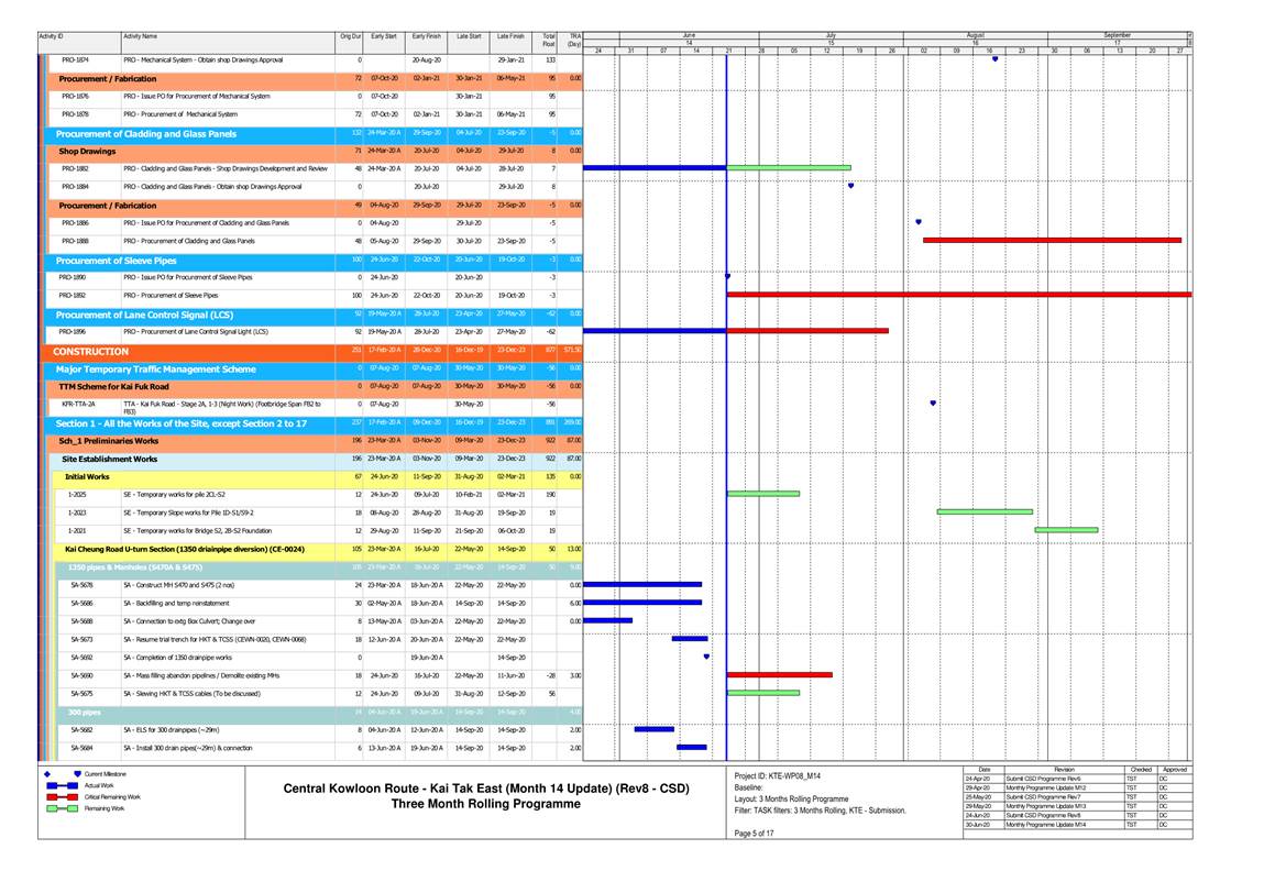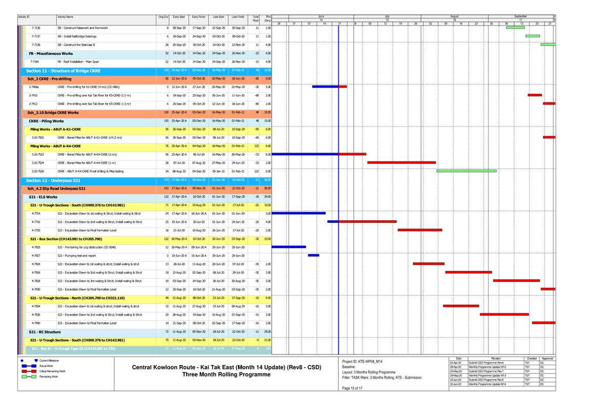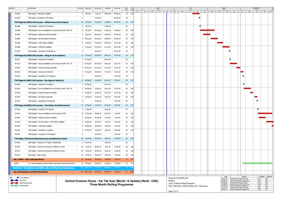 1.4. A summary of major construction activities provided by the Contractor in this reporting period is shown in Table 1.1. The construction programme is presented in Appendix B.