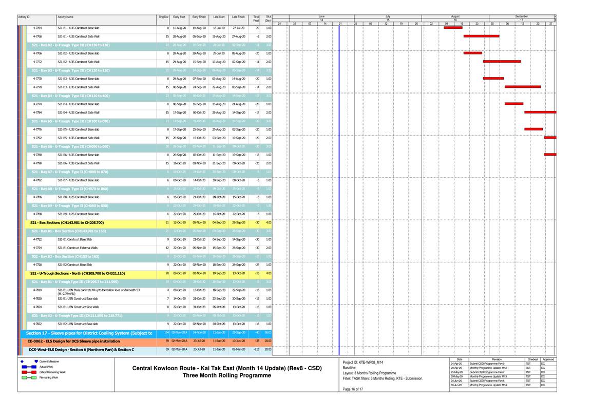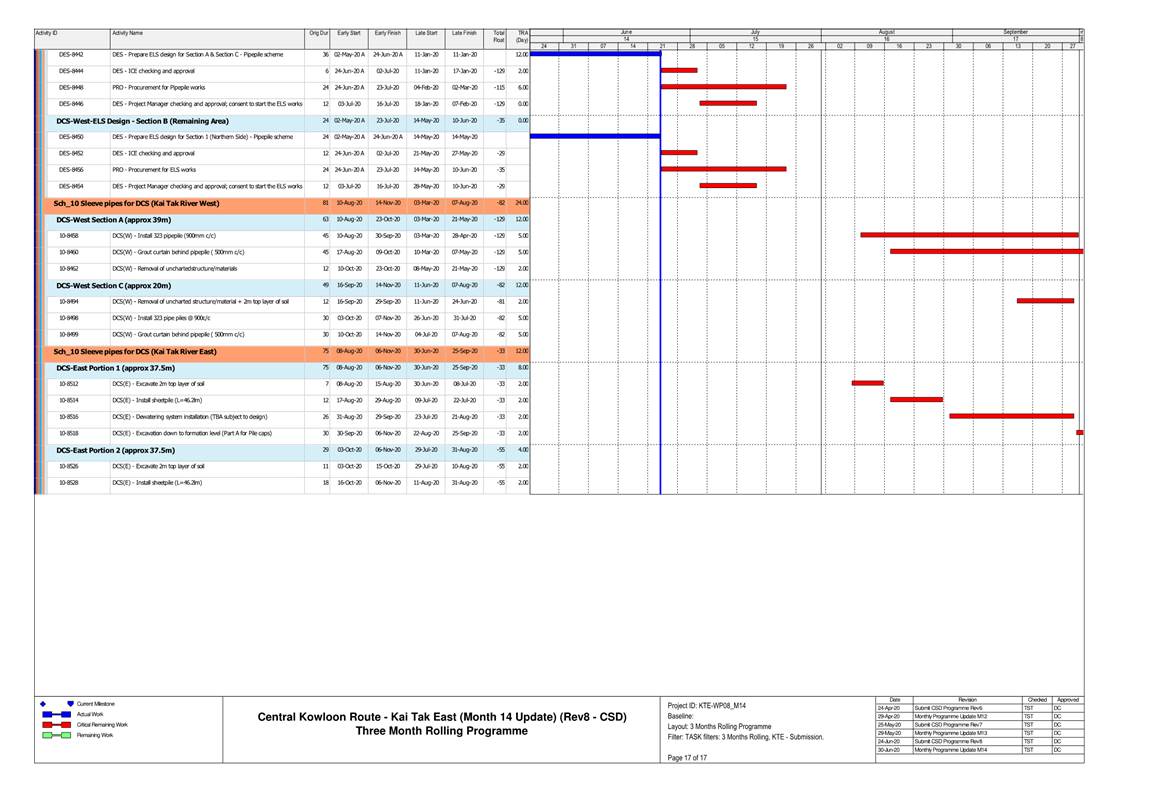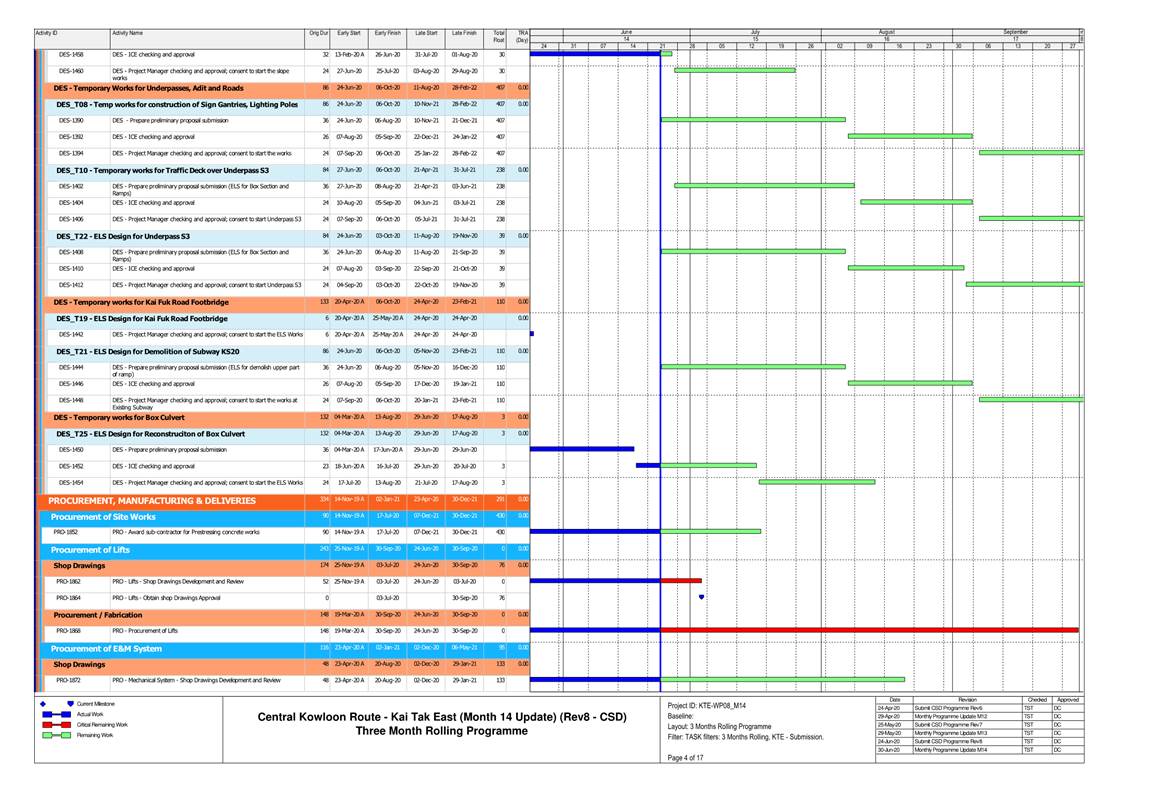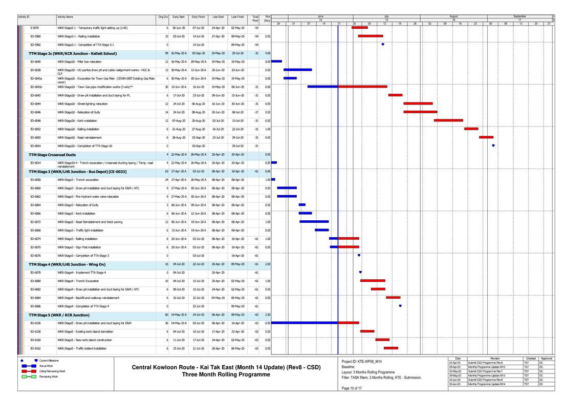 1.4. A summary of major construction activities provided by the Contractor in this reporting period is shown in Table 1.1. The construction programme is presented in Appendix B.