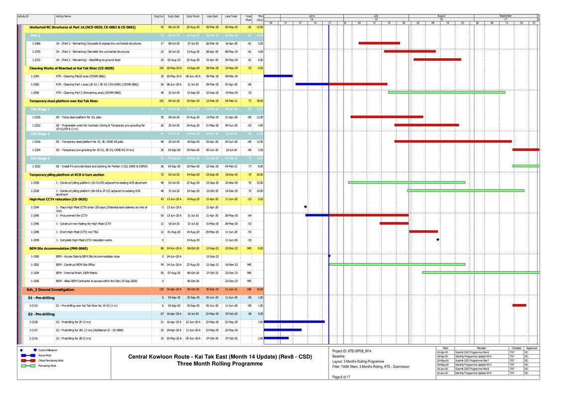 · Ground Investigation at Portion 2B & 3B & Kai Cheung U Turn & Kai Cheung Loop Road. · Bored Pile at Portion 1A, 2B & 3B. · Foundation Work for the Foot Bridge at Kai Fuk Road. · Sheetpiling Works for Adit at Area 1D3. · Sheetpiling Works for Underpass at Portion 3B. · Construction of Marine Platform at Kai Tak Nallah |