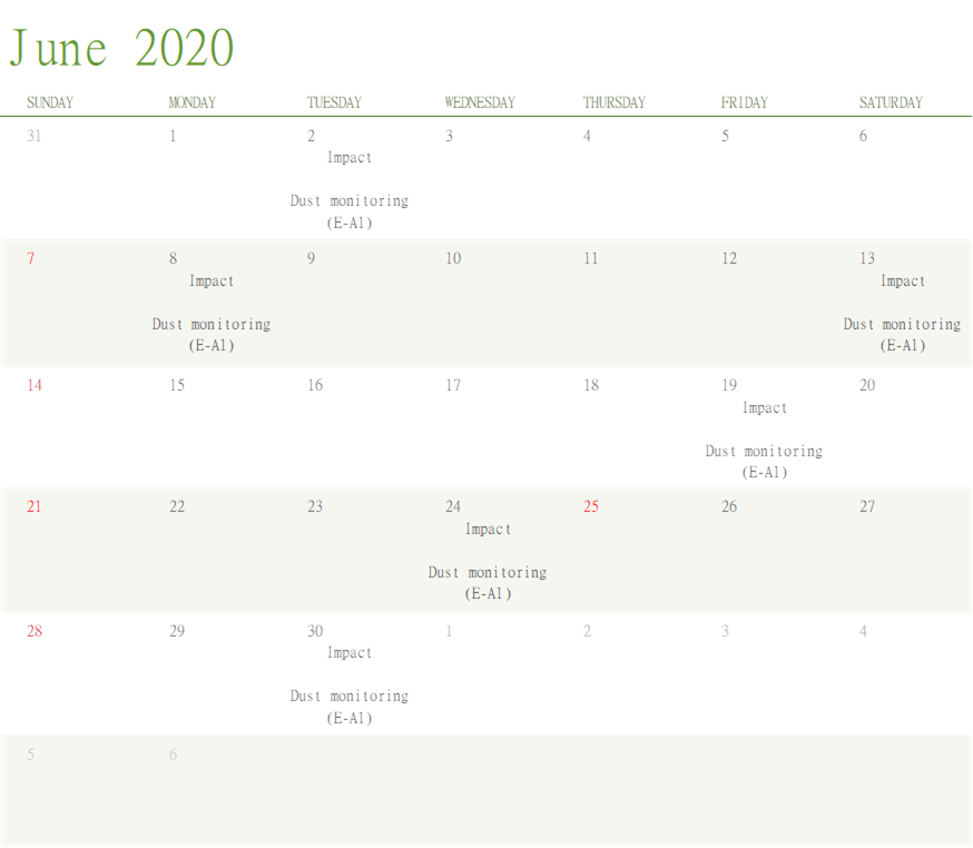 A.4 Joint weekly site inspections were conducted by representatives of Environmental team (ET), Contractor and Engineer on 3, 10, 17 and 24 June 2020. Also, a joint site inspection with Independent Environmental Checker (IEC) was undertaken on 17 June 2020. Details of the audit findings and implementation status are presented in Section 5.