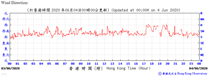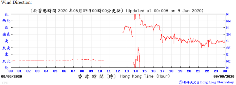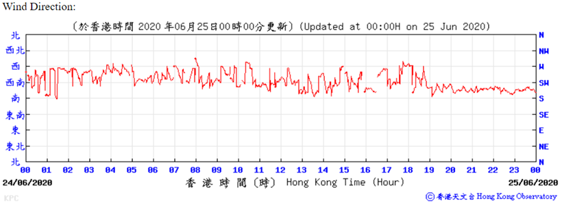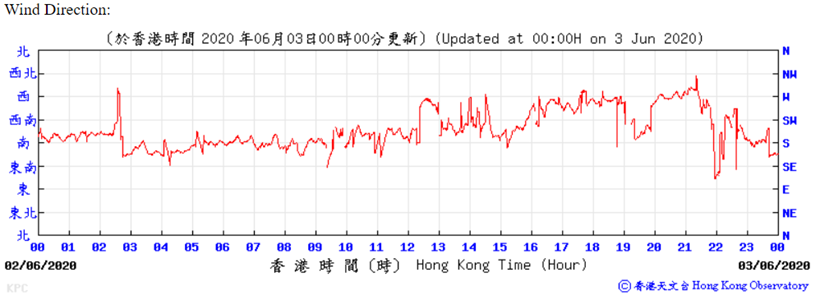 WIND DIRECTION DATA FOR 2, 8, 13, 19, 24 and 30 Jun 2020