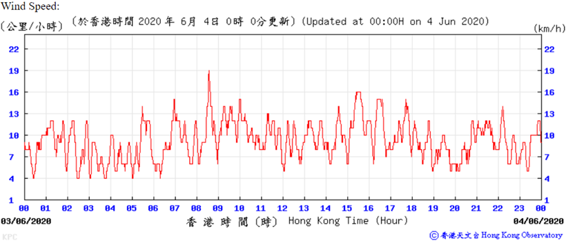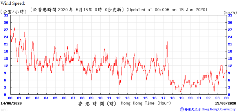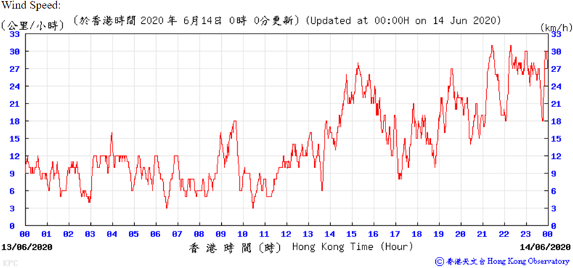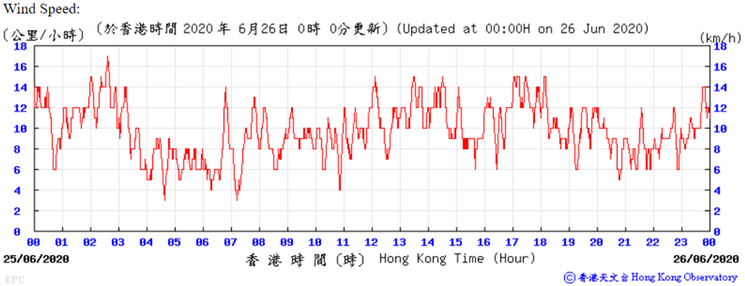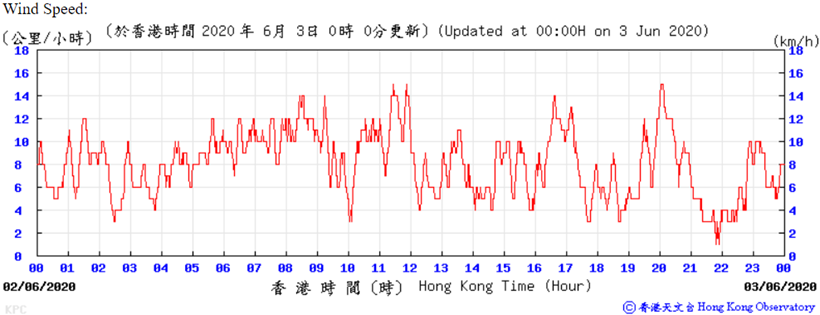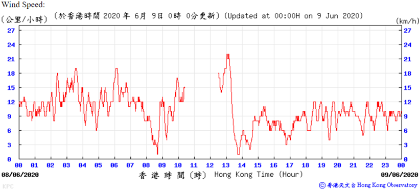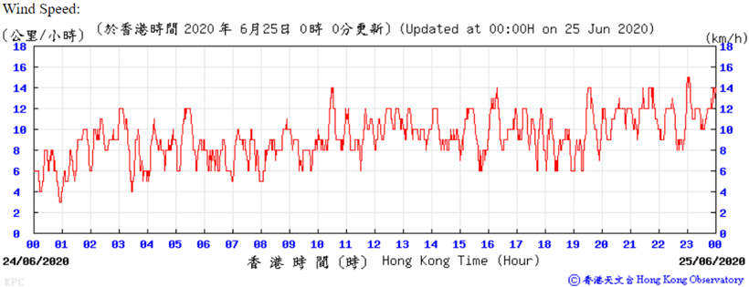 WIND SPEED DATA FOR 2, 8, 13, 19, 24 and 30 Jun 2020