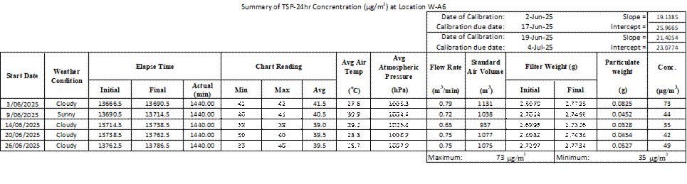 A.5 Joint weekly site inspections were conducted by representatives of the Contractor, Engineer and Contractor’s ET on 5, 12, 20 and 26 June 2025. A joint site inspection with IEC was undertaken on 20 June 2025. Details of the audit findings and implementation status are presented in Section 5.