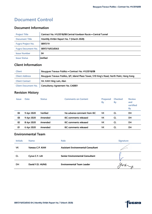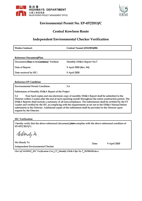 the EM&A Manual during the reporting period from 01/03/2020 to 31/03/2020.
