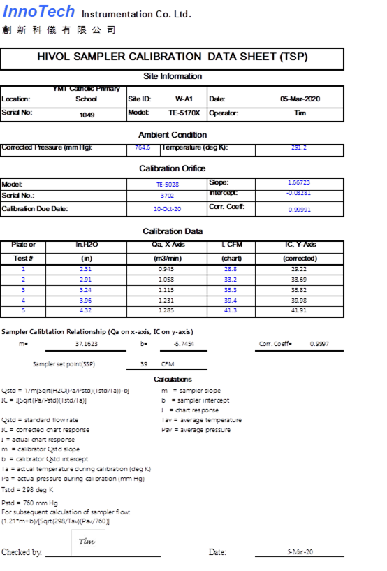 H. Calibration Certificate (Air Monitoring)