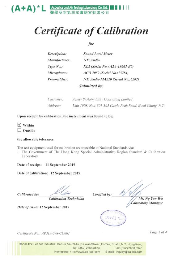 I. Calibration Certificate (Noise)