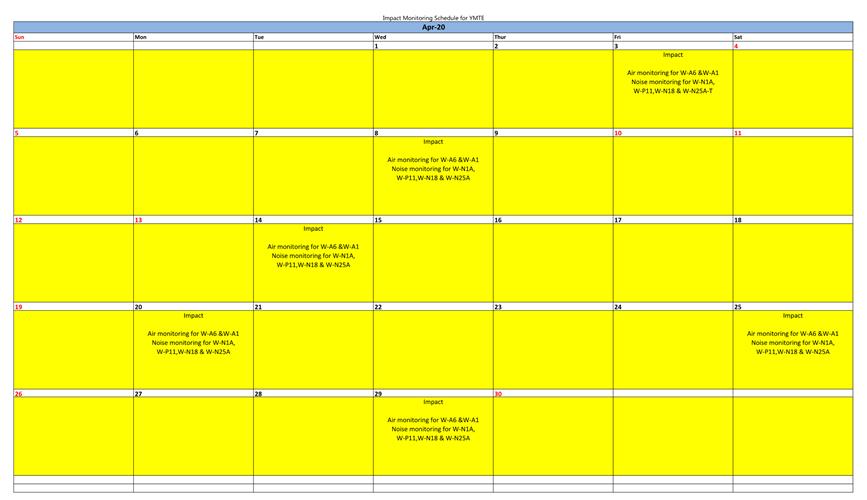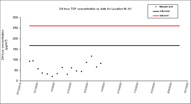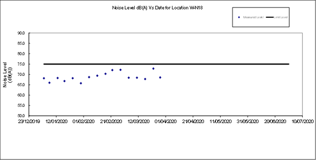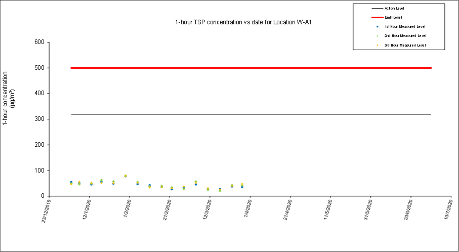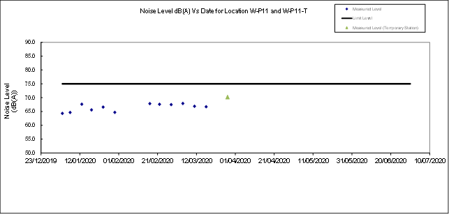 Remark: Noise monitoring station at Prosperous Garden Block 1 (W-N25A) was temporarily suspended from 24 March 2020 to 6 April 2020 due to a case of novel coronavirus infection at the Prosperous Garden Block 4. A temporary alternative noise monitoring location, W-N25A-T will be used on 3 April 2020.