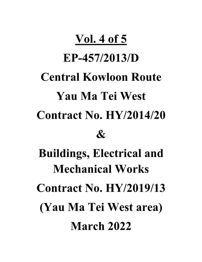 1.2. The Central Kowloon Route – Design and Construction Environmental Impact Assessment Report (Register No.: AEIAR-171/2013) was approved with conditions by the Environmental Protection Department (EPD) on 11 July 2013. An Environmental Permit (EP 457/2013) was issued on 9 August 2013. Variations of EP (VEP) was subsequently applied for and the latest EP (EP-457/2013/D) was issued by EPD on 15 June 2021.