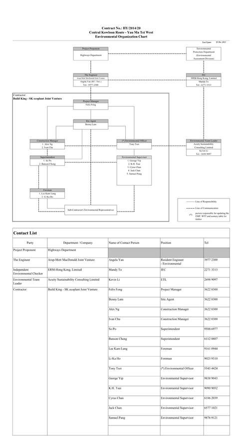 6.5 The Event and Action Plans for air quality and construction noise could be referred to Appendices D and E of the EM&A report in Contract No. HY/2014/20 respectively.