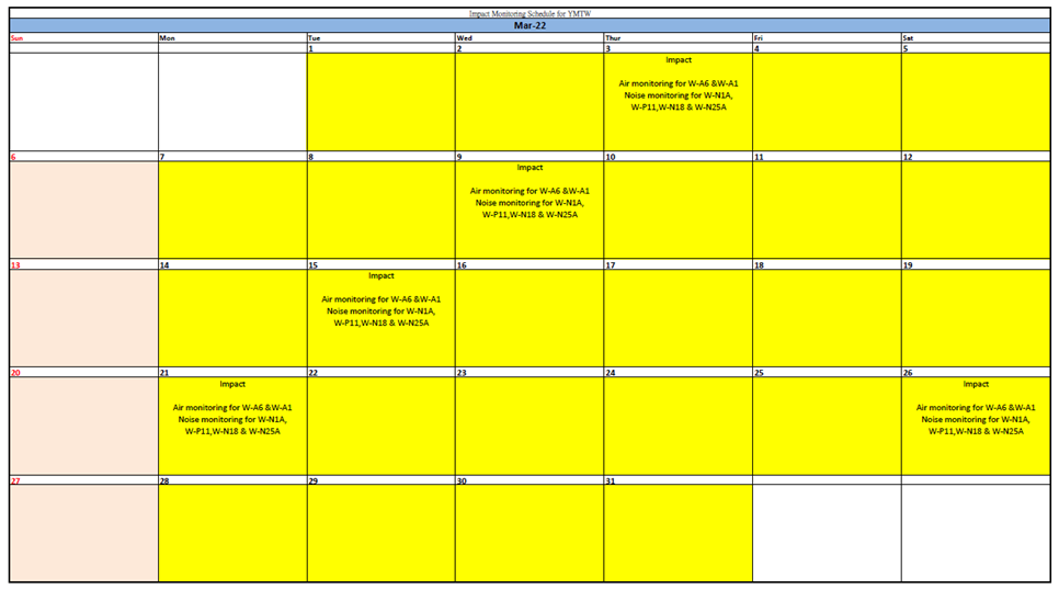 6.2 Site audits were conducted on 1, 8, 15, 22 & 29 March2022 in the reporting month. Joint site inspection with the representative of IEC was conducted on 15 March 2022. No non-compliance was observed during the site audit.