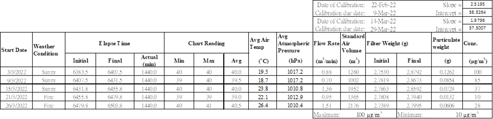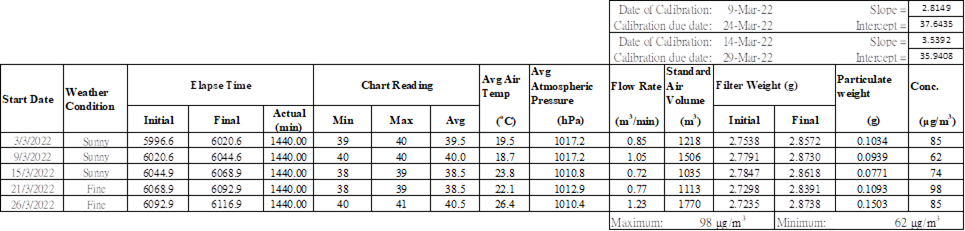 2.2 No Action/Limit Level exceedance was recorded for all 1-hour TSP and 24-hour TSP monitoring in the reporting month.