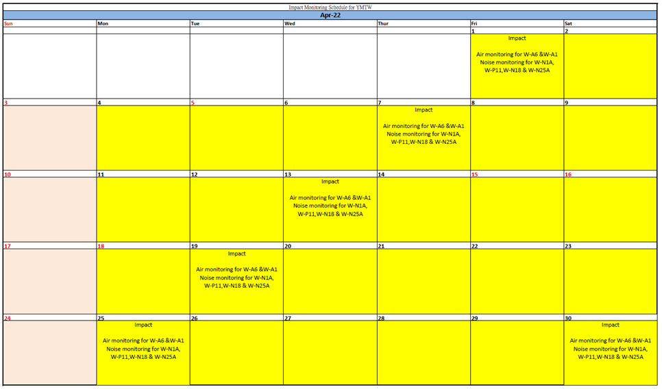 · No Limit Level exceedance for day time construction noise monitoring was recorded in the reporting month.