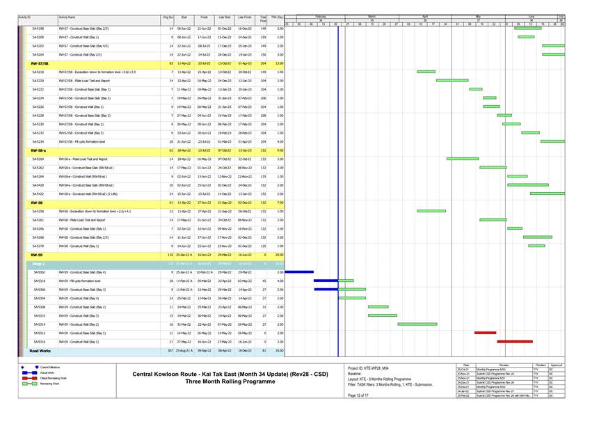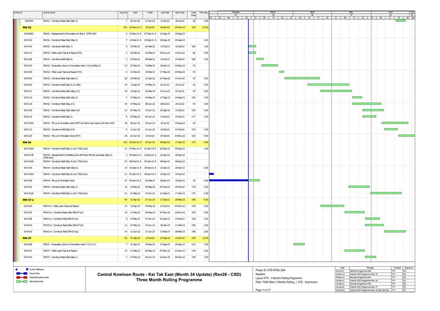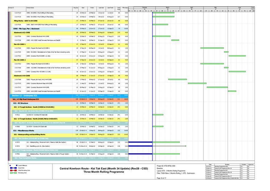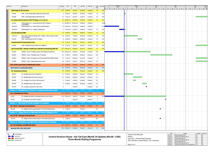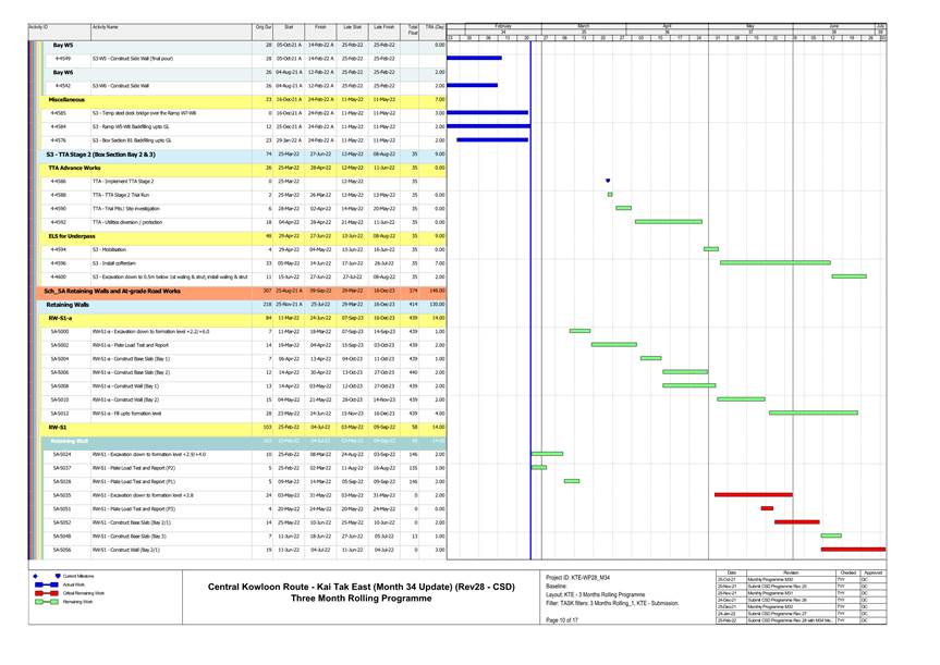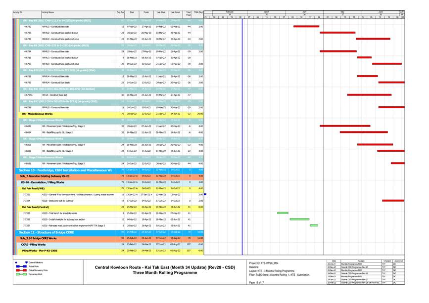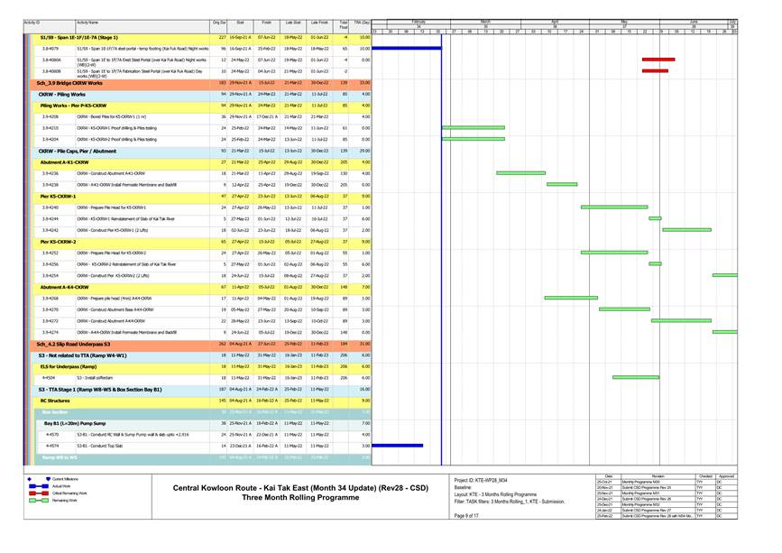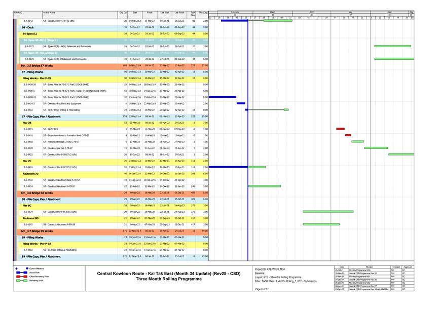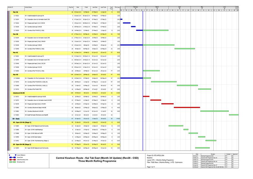 1.4. A summary of major construction activities provided by the Contractor in this reporting period is shown in Table 1.1. The construction programme is presented in Appendix B.