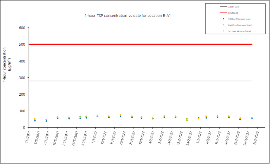 · No Action/Limit Level exceedance for 1-hour TSP was recorded.