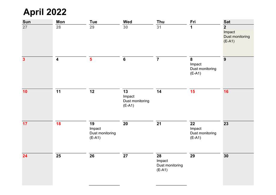 Site audits were carried out on a weekly basis to monitor and audit the timely implementation of air quality mitigation measures within the site boundaries of this Project. The summary of site audits are shown in Table 6.1 of this report.