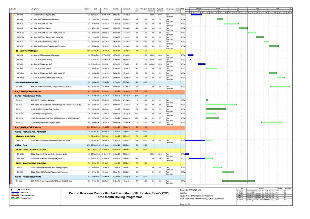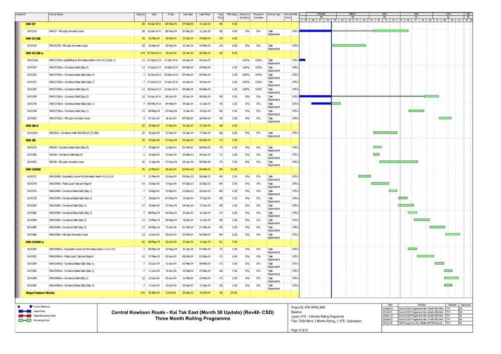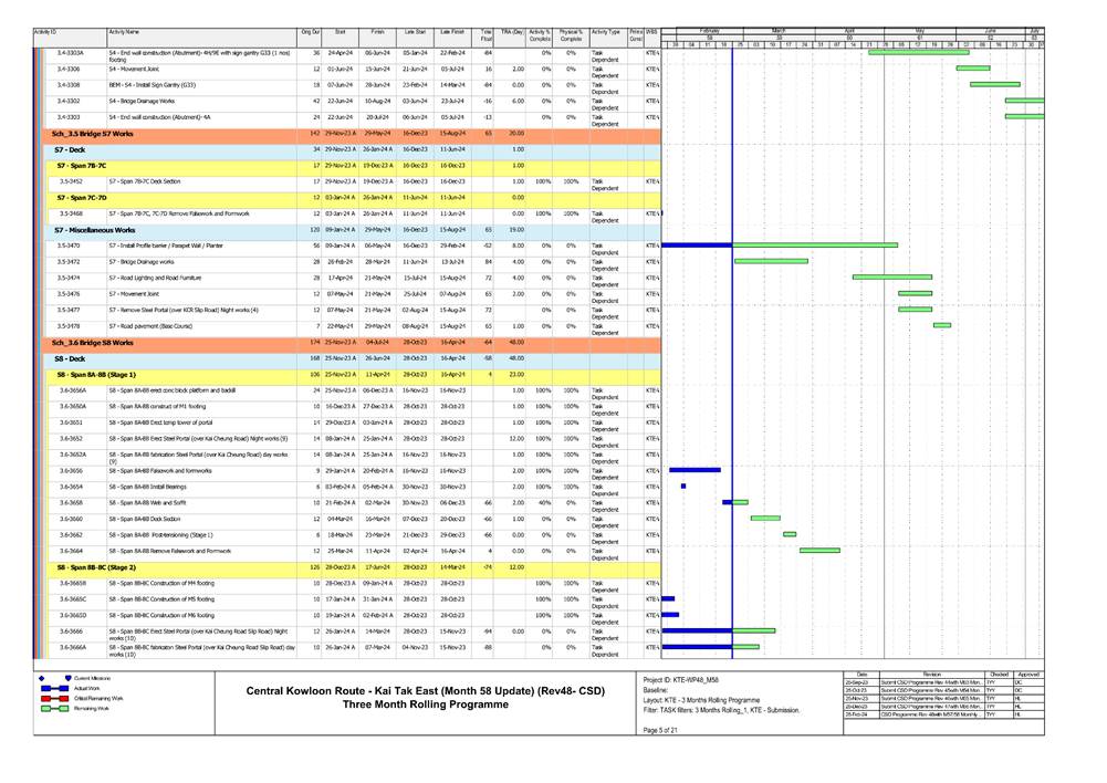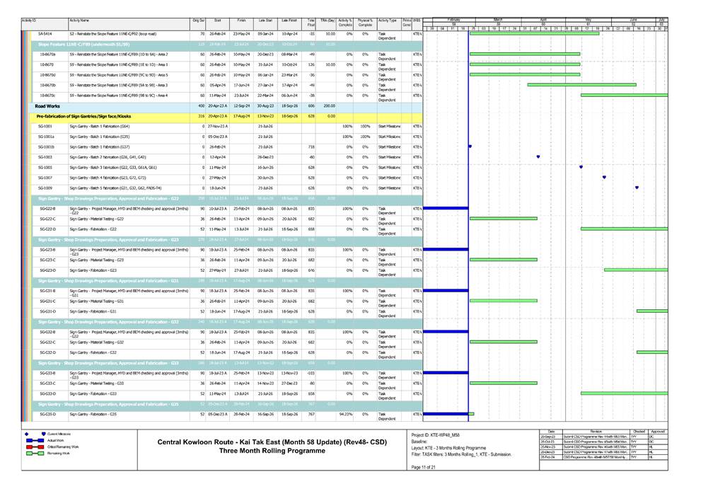 1.5.      A summary of major construction activities provided by the Contractor in this reporting period is shown in Table 1.1. The construction programme is presented in Appendix B.