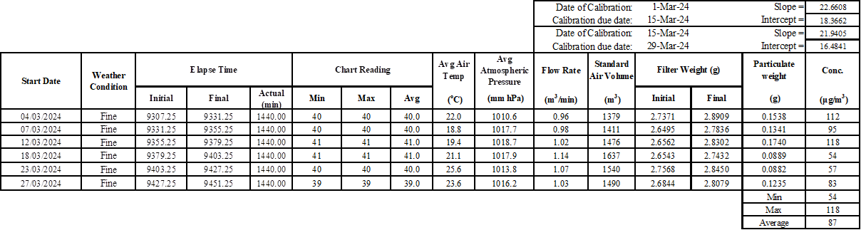 A.3      A summary of regular construction dust monitoring activities in this reporting period is listed below: