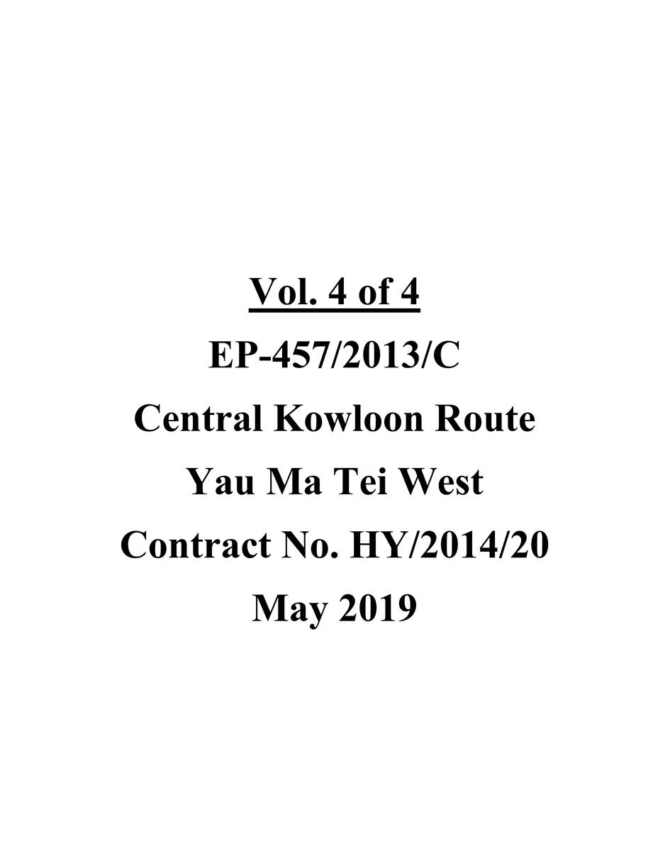 1.2. The Central Kowloon Route – Design and Construction Environmental Impact Assessment Report (Register No.: AEIAR-171/2013) was approved with conditions by the Environmental Protection Department (EPD) on 11 July 2013. An Environmental Permit (EP 457/2013) was issued on 9 August 2013. Variations of EP (VEP) was subsequently applied for and the latest EP (EP-457/2013/C) was issued by EPD on 16 January 2017.