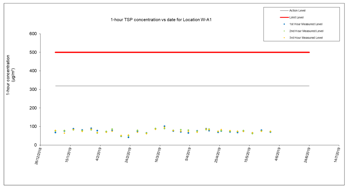 A.10 No exceedance of the Action and Limit Levels of 24-hour TSP and 1-hour TSP monitoring were recorded during the reporting period.