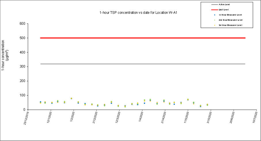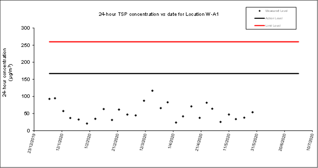 A.4 Due to the technical problem for HVS equipment on 11 May 2020 at Man Cheong Building (W-A6), 24-hour TSP dust monitoring was suspended. Immediate equipment inspection was conducted and the problem was fixed. Supplementary 24-hour TSP dust monitoring was conducted on 14 May 2020.