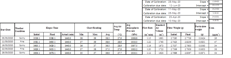 A.5 Scheduled monitoring for 1-hour TSP remained unaffected, only the schedule of 24-hour TSP was changed.