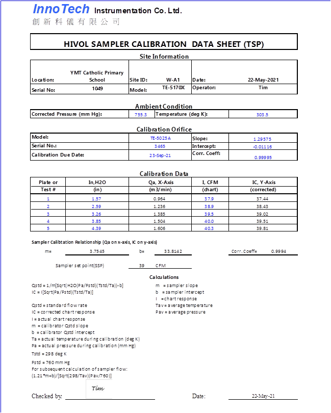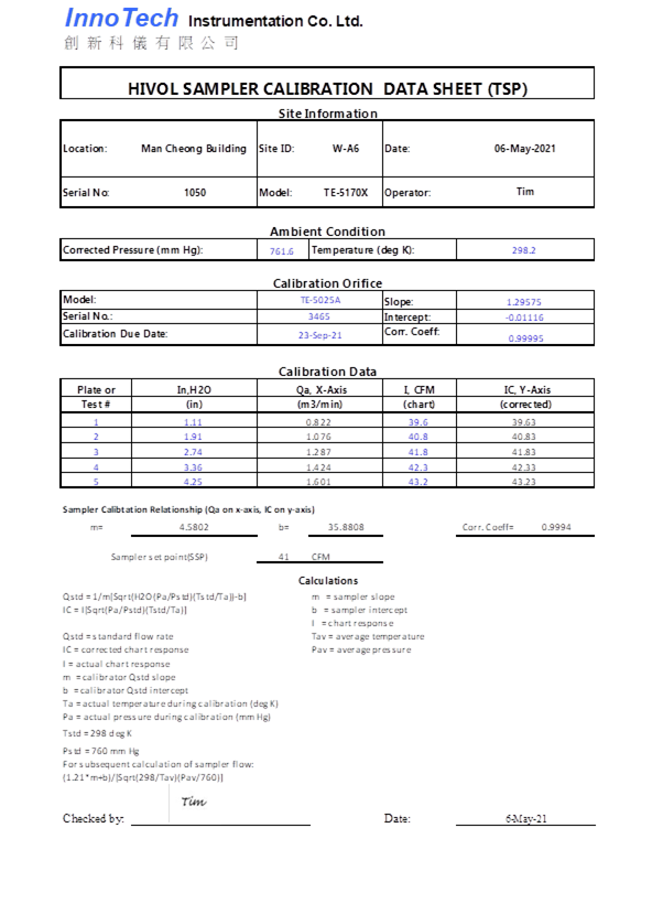 H. Calibration Certificate (Air Monitoring)