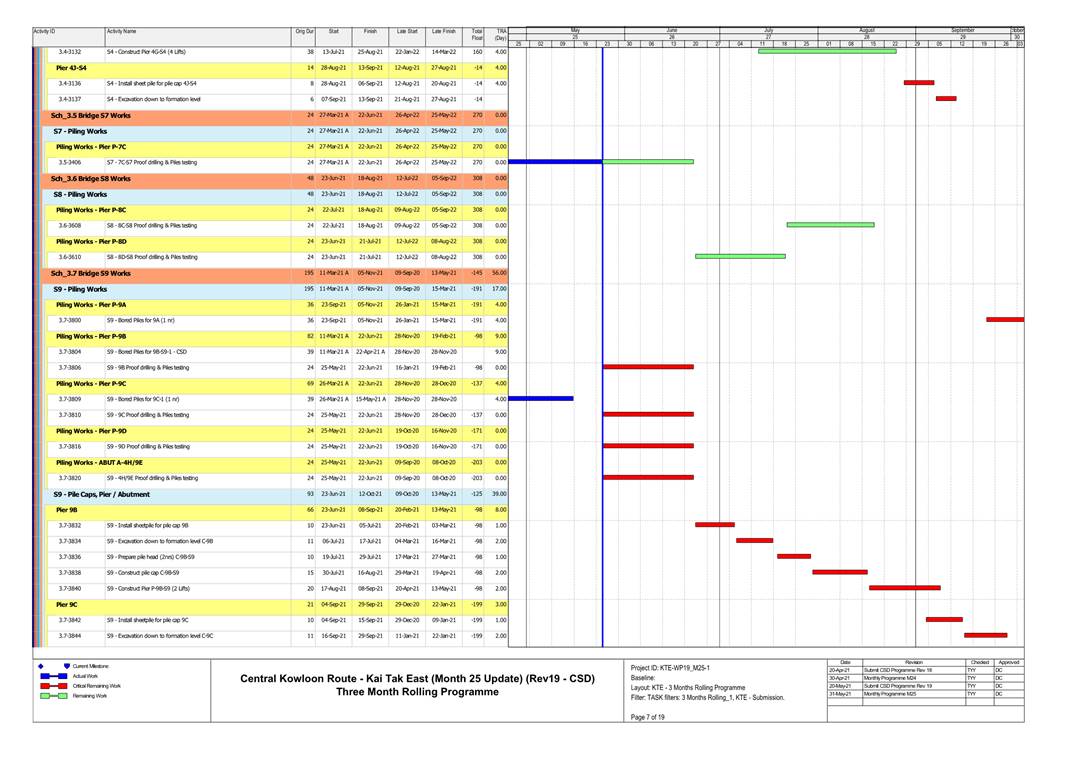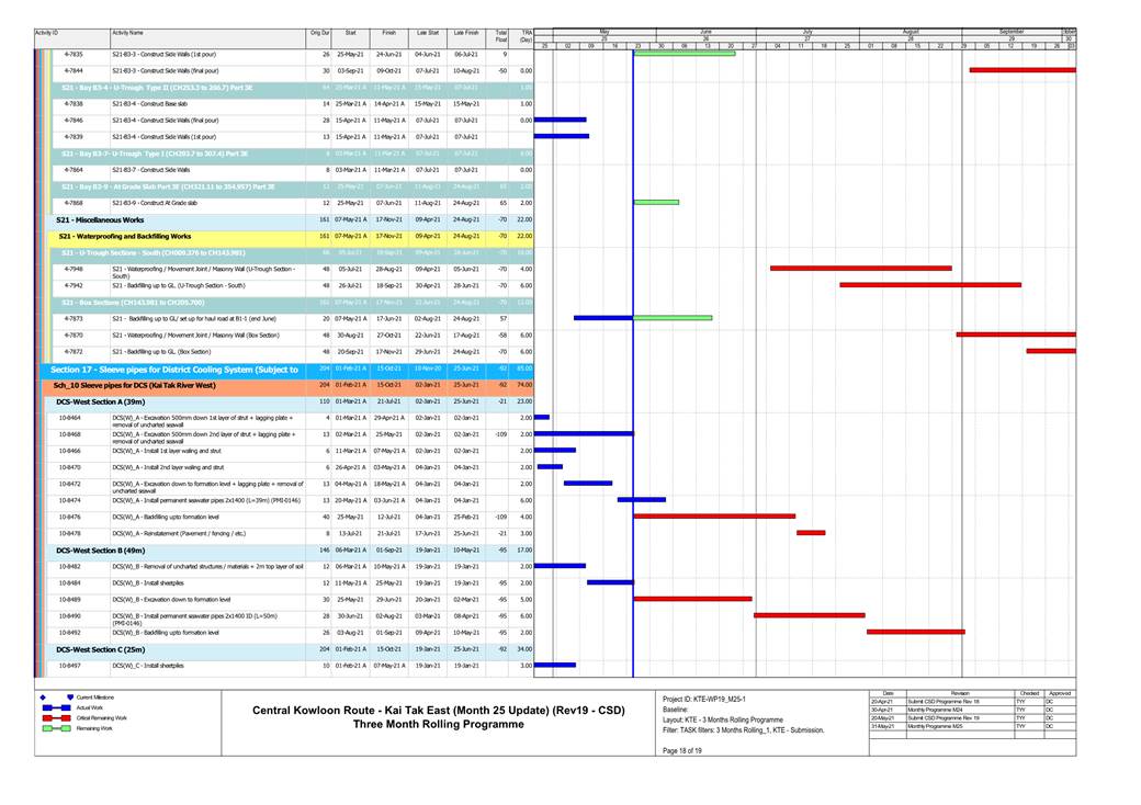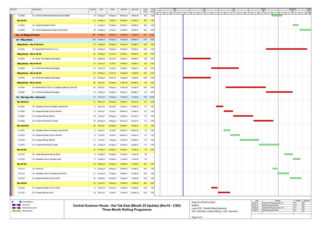 · Bored Pile at Portion 2B, 3B, Kai Cheung U Turn & Kai Cheung Loop Road. · Pile Cap Construction at Kai Cheung Loop Road & Portion 2B. · Excavation Works for Adit at Area Part 1B. · Excavation Works for Underpass at Portion 3B. · Construction of Marine Platform at Kai Tak Nallah · Retaining Wall Construction at Portion 2B · Sheet Piling Work at Area Part 1A. · Central Divider Removal at Kai Fuk Road. |