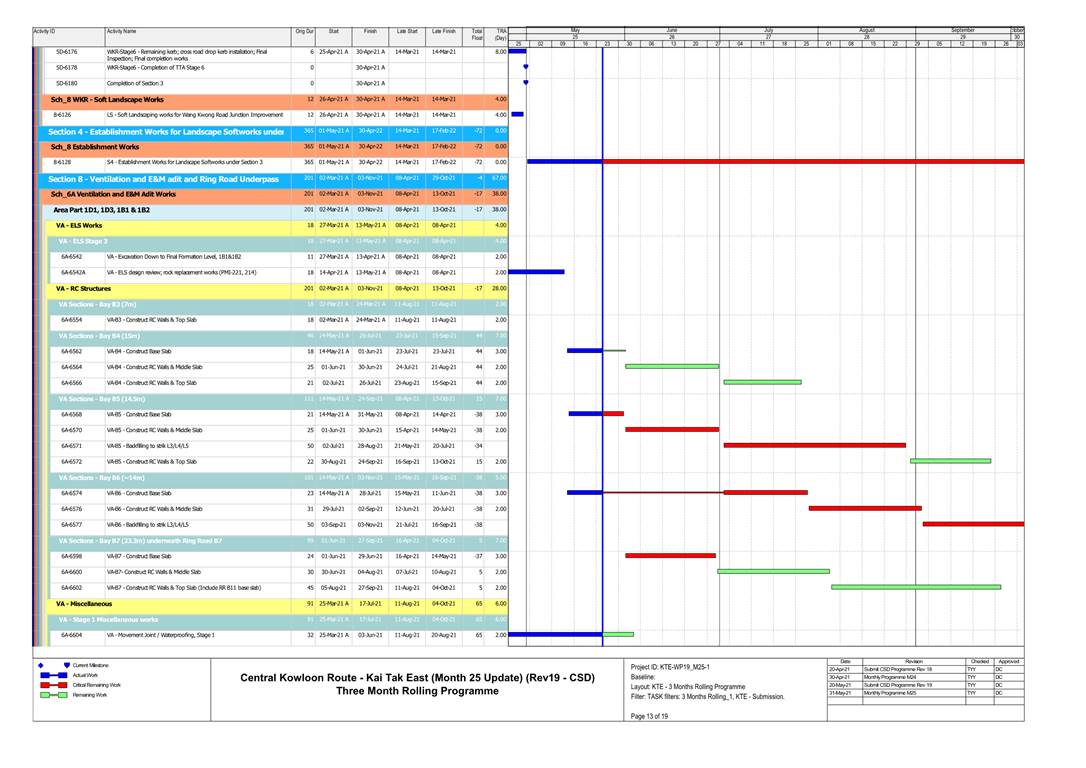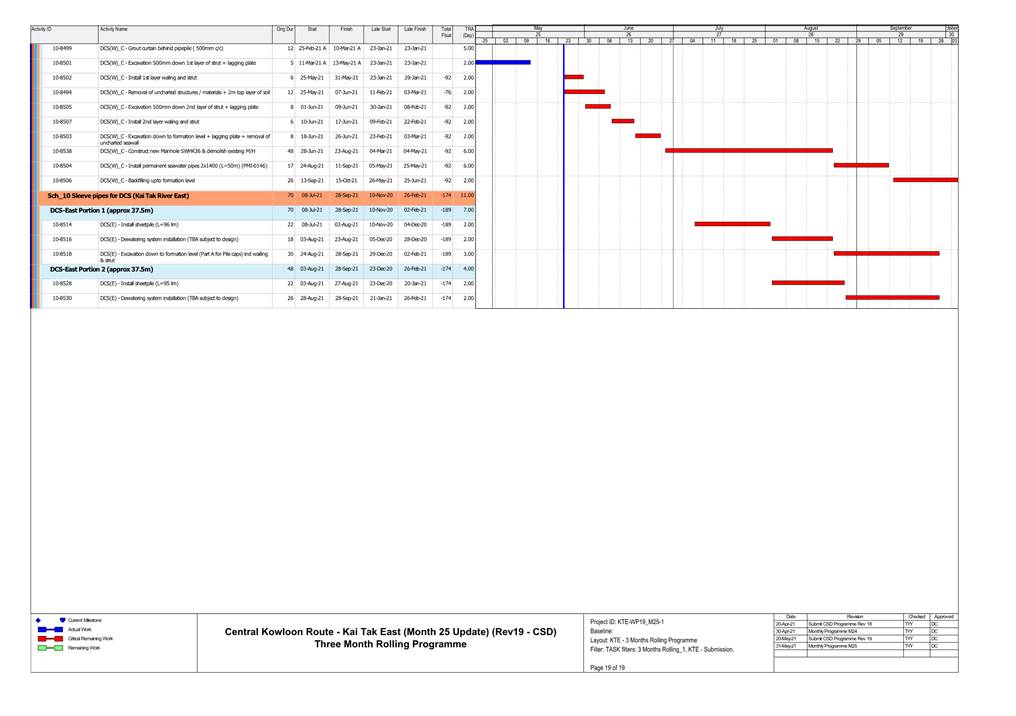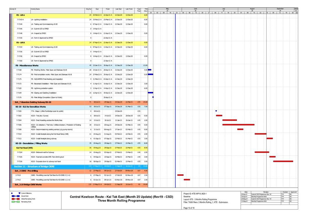 1.4. A summary of major construction activities provided by the Contractor in this reporting period is shown in Table 1.1. The construction programme is presented in Appendix B.