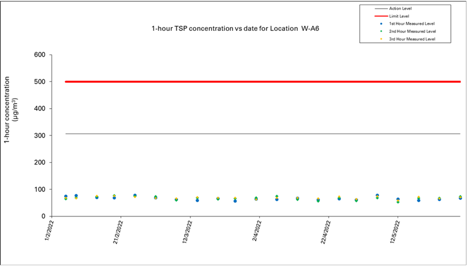 2.2 No Action/Limit Level exceedance was recorded for all 1-hour TSP and 24-hour TSP monitoring in the reporting month.