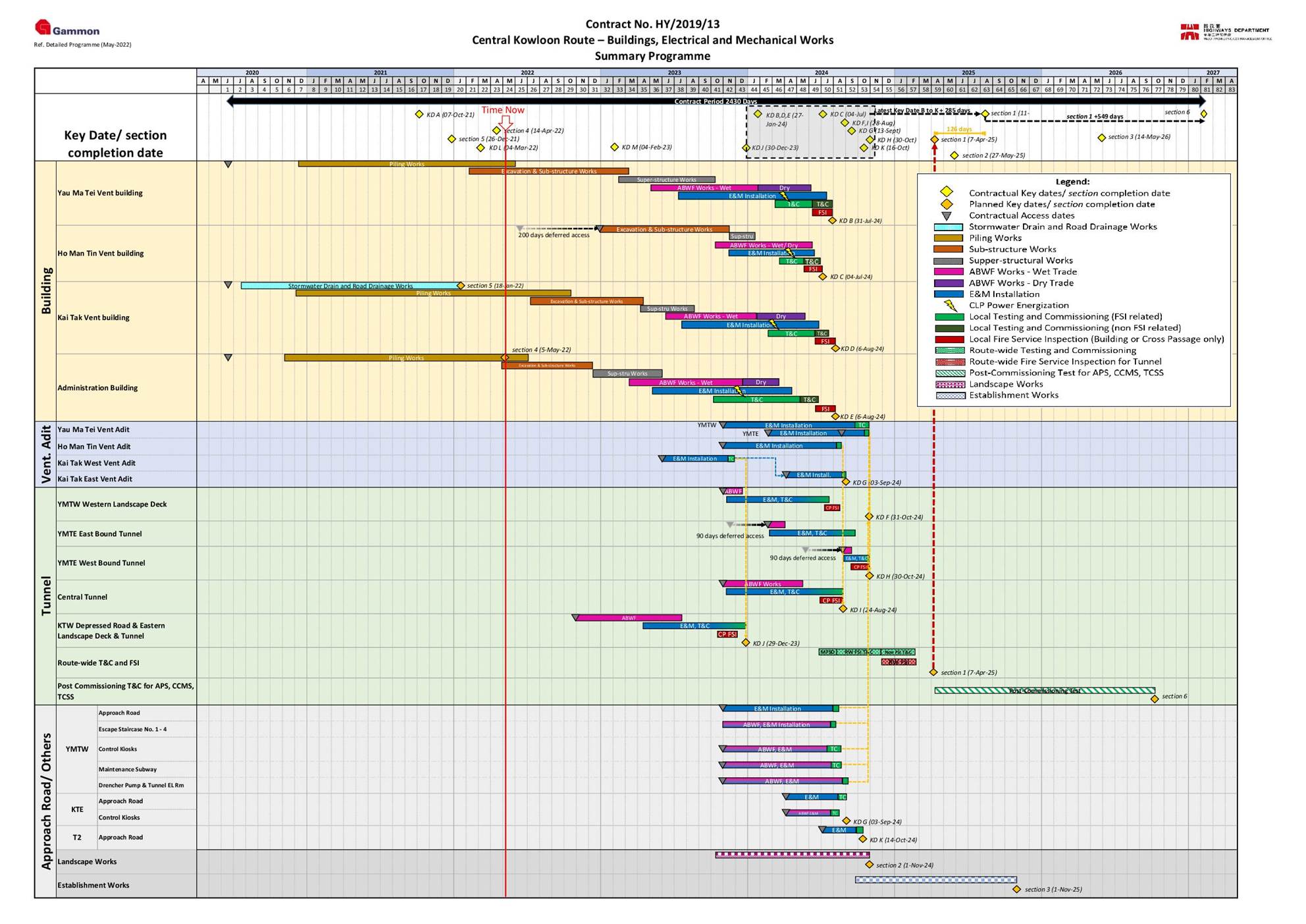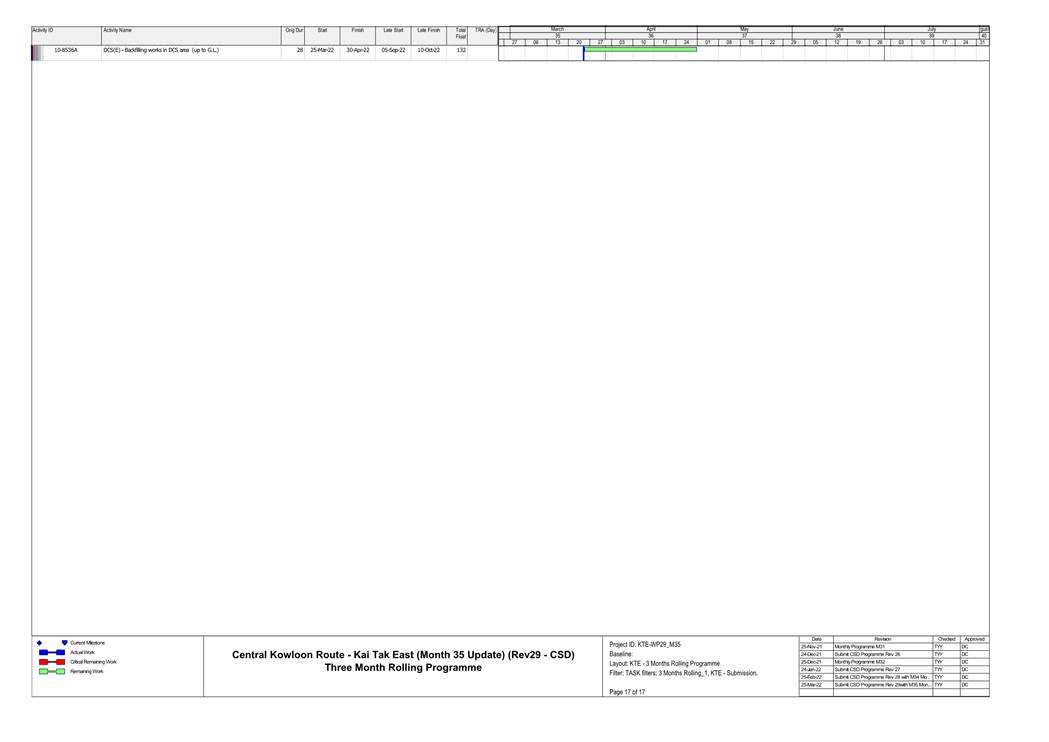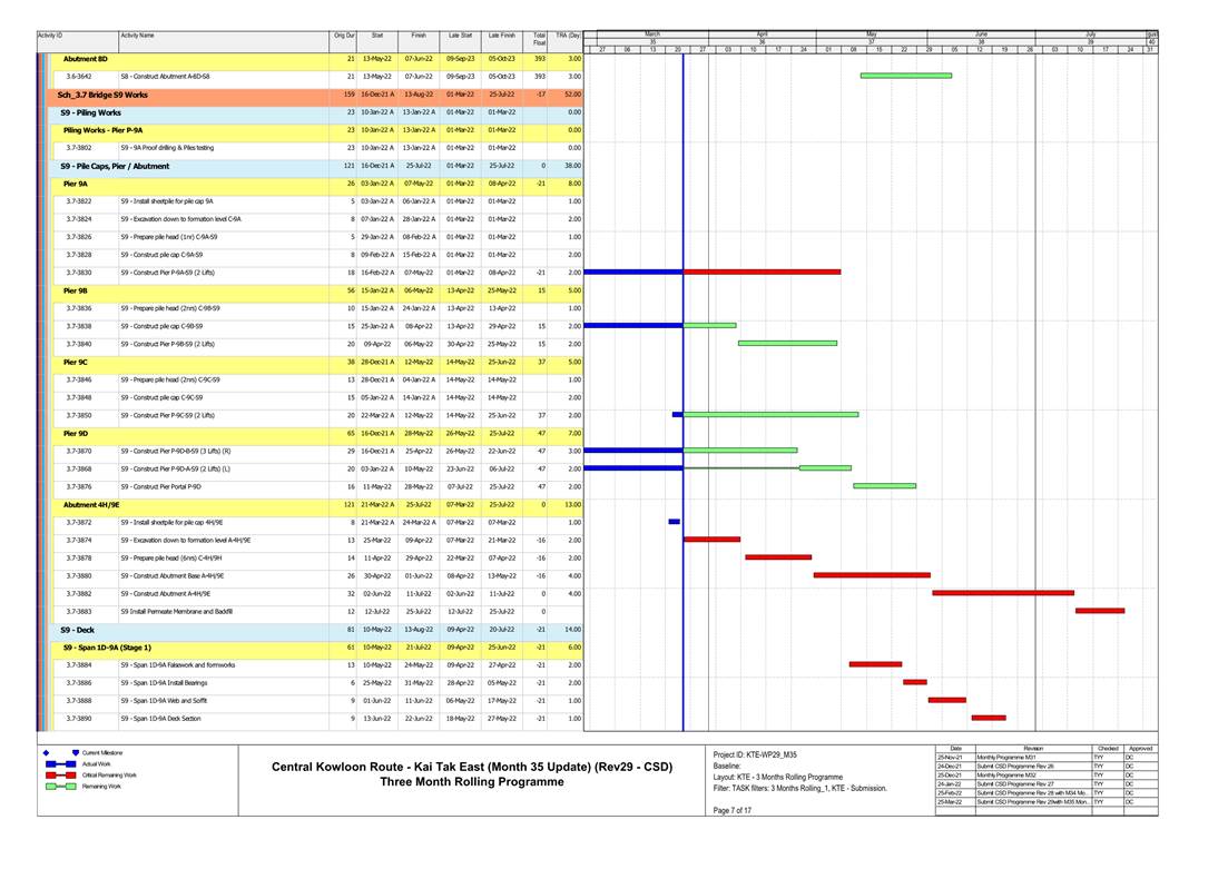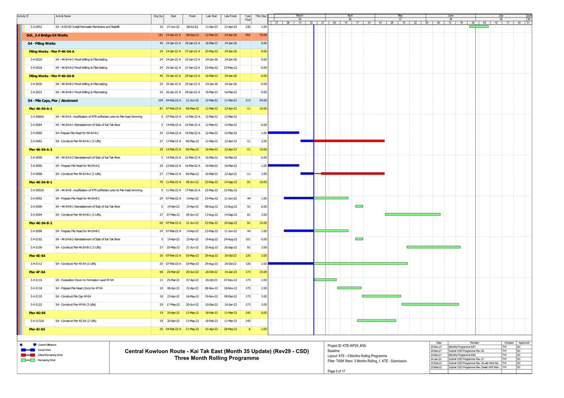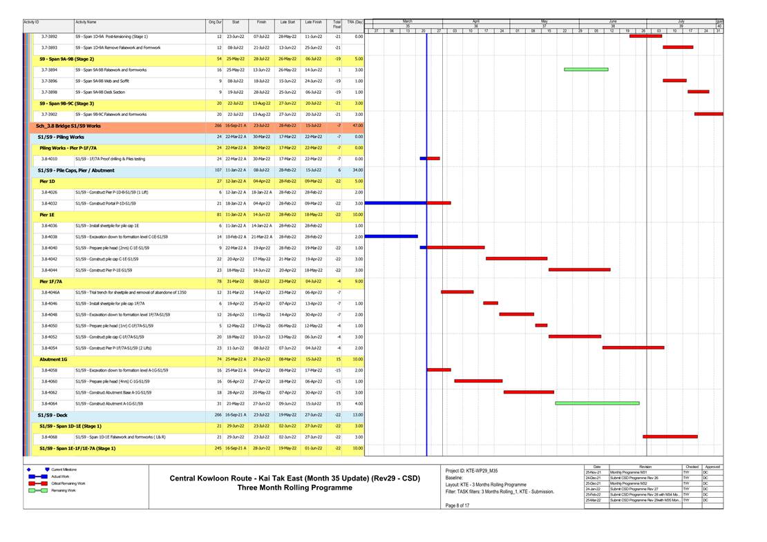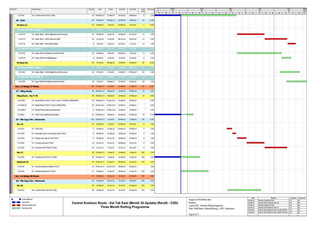 1.4. A summary of major construction activities provided by the Contractor in this reporting period is shown in Table 1.1. The construction programme is presented in Appendix B.