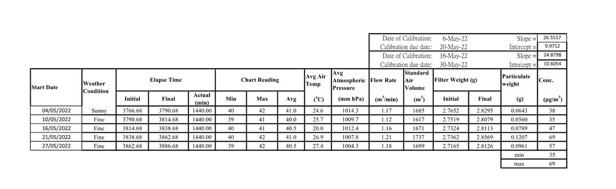 2.2 No Action/Limit Level exceedance was recorded for all 1-hour TSP and 24-hour TSP monitoring in the reporting month.