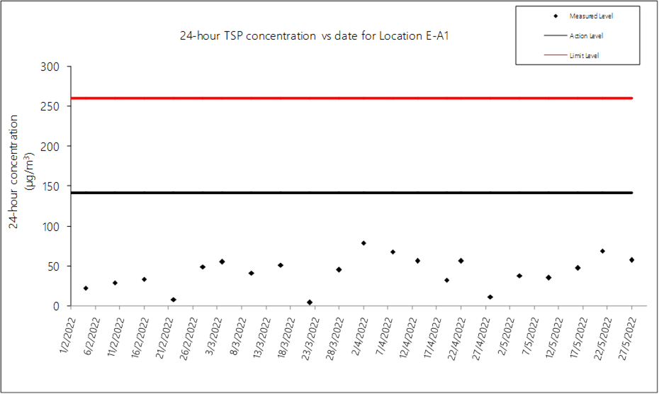8.2 No Action/Limit Level exceedance was recorded for all 1-hour and 24-hour TSP monitoring in the reporting month.