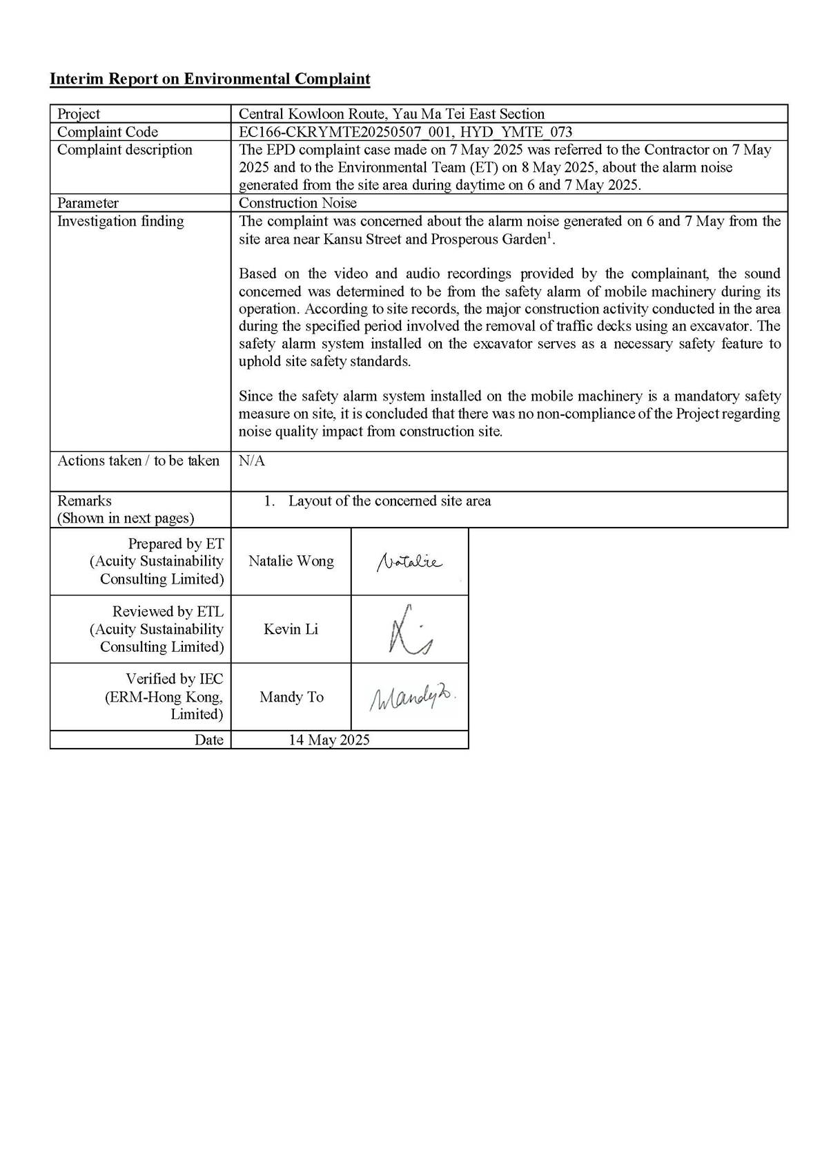 A.1 Build King – SK ecoplant Joint Venture (“Contractor”) commenced the construction works of Highway Department (HyD) Central Kowloon Route Contract No. HY/2014/08 – Section of Yau Ma Tei East (“The Project”) on 20 April 2018. This is the 86th monthly Environmental Monitoring and Audit (EM&A) report presenting the EM&A works carried out during the period from 1 May 2025 to 31 May 2025.