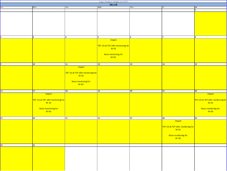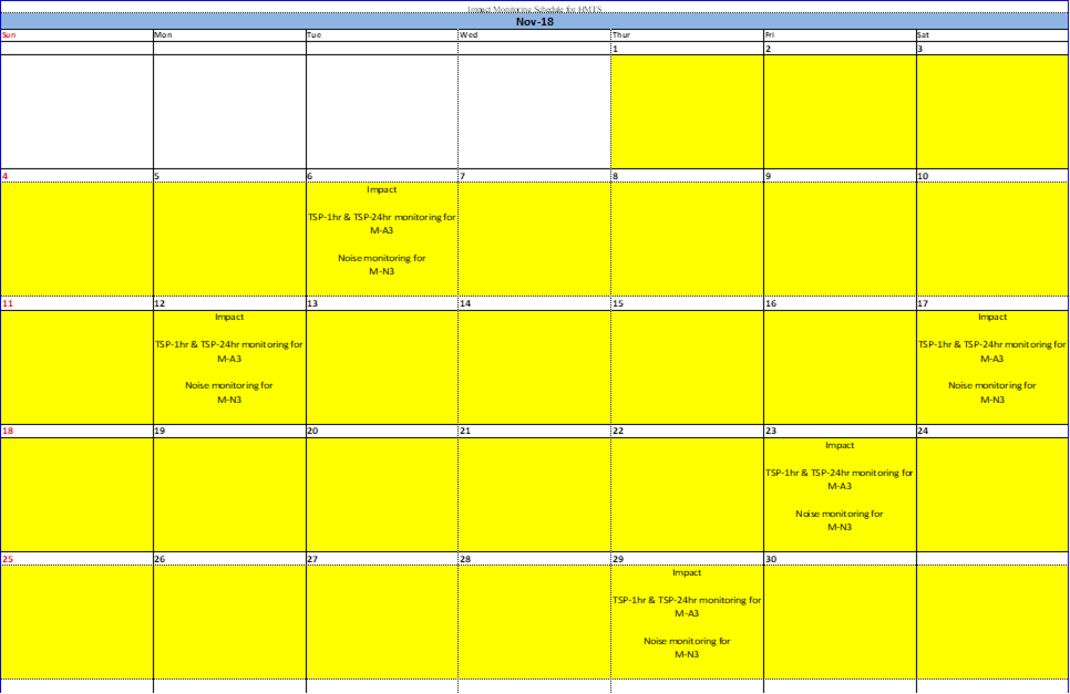 A.7 Joint weekly site inspections were conducted by representatives of the Contractor, Engineer and Contractor’s ET on 1, 6, 14, 20 and 27 November 2018. The representative of IEC joined the site inspection on 14 November 2018. Details of the audit findings and implementation status are presented in Section 5.
