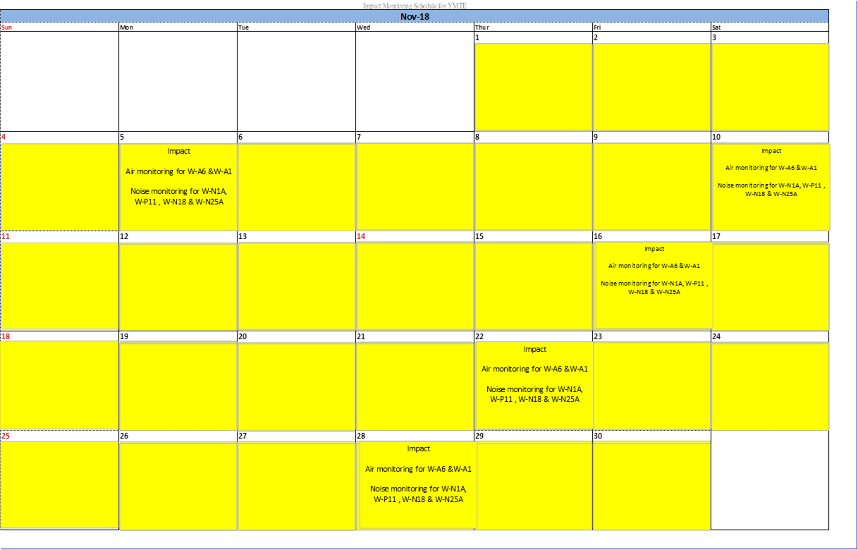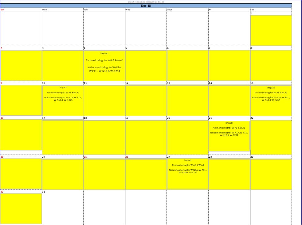 A.7 Joint weekly site inspections were conducted by representatives of the Contractor, Engineer and Contractor’s ET on 1,8,15,22 and 29 November 2018. Details of the audit findings and implementation status are presented in Section 5.