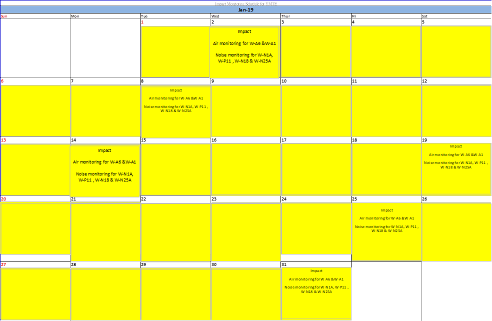 A.4 No construction work was conducted during time period other than normal working hours during this reporting month.