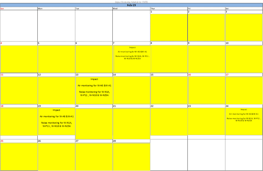 A.10 No exceedance of the Action and Limit Levels of 24-hour TSP and 1-hour TSP monitoring were recorded during the reporting period.