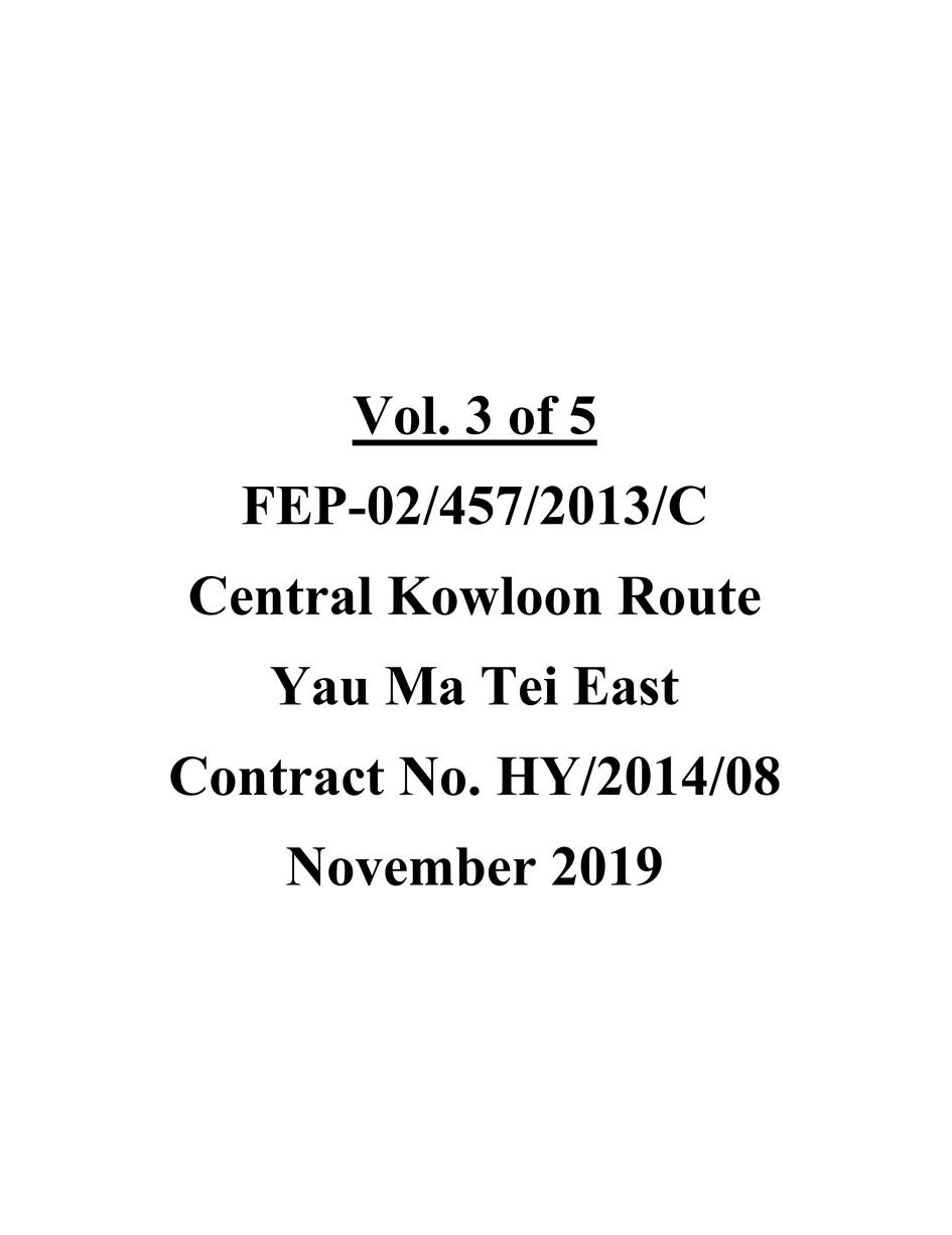 1.2. The Central Kowloon Route – Design and Construction Environmental Impact Assessment Report (Register No.: AEIAR-171/2013) was approved with conditions by the Environmental Protection Department (EPD) on 11 July 2013. An Environmental Permit (EP 457/2013) was issued on 9 August 2013. Variations of EP (VEP) was subsequently applied for and the latest EP (EP-457/2013/C) was issued by EPD on 16 January 2017. A Further EP (FEP-02/457/2013/C) was issued by EPD on 5 March 2018.